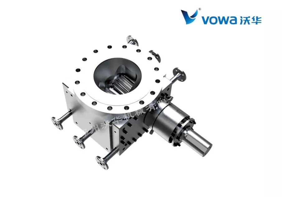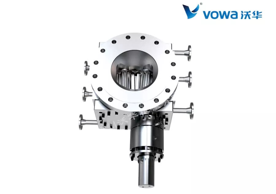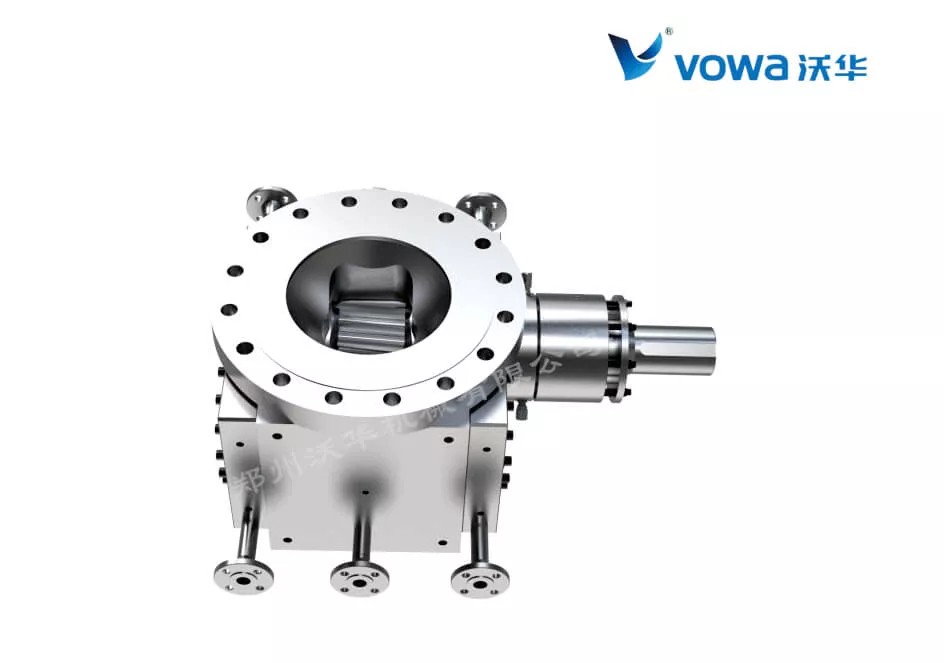 GHK系列熔体齿轮泵一般安装于反应釜底,采用电机+减速机+万向联轴器驱动,熔体齿轮泵属于容积式强制输送泵,可以通过调整泵的转速来调节泵输出流量,推荐采用变频调速方式,可以实现齿轮泵的近线性流量输出。